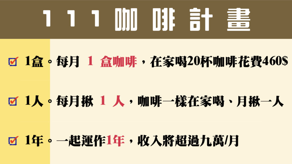 所以我們透過這個111咖啡計畫去建立起咖啡通路!